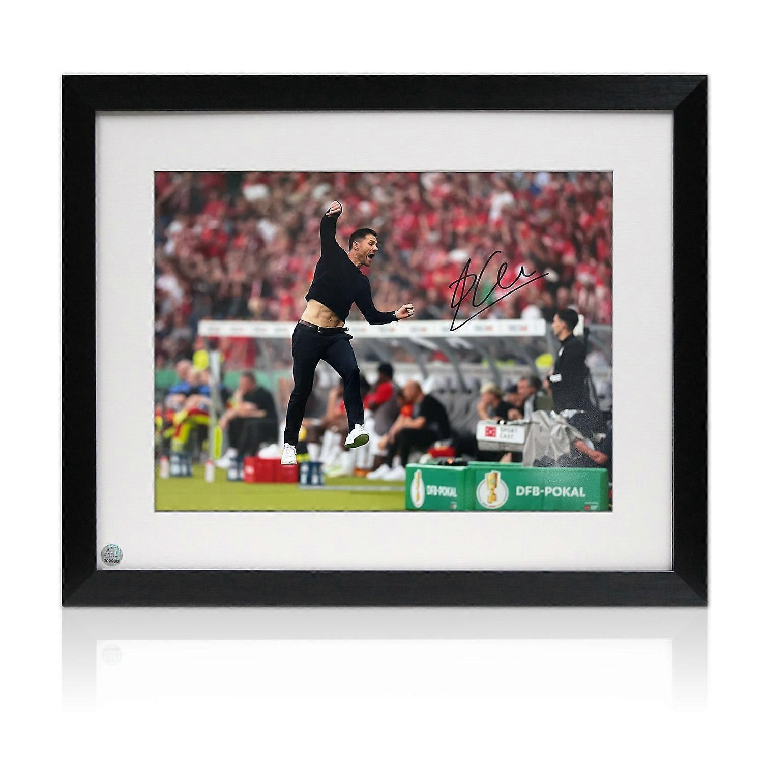 16 12 inch photo signed by Xabi Alonso. In standard black frame. Approximate size: 460 560 mm / 18 22 inches / This photo was signed by Xabi Alonso on August 13, 2024 in Leverkusen. The photo shows Xabi, as Head Coach of Bayer 04 Leverkusen, celebrating his teams first and only goal during the DFB Cup 2023/24 final in 2024. Alonso led Leverkusen to their first league title in his first full season at the club in 2024, being the first and the only unbeaten team in the Bundesliga history. All signatures are originals they are never printed. The product image is a stock photo so the position of signatures might vary slightly. Exclusive Memorabilia unconditionally guarantees all signed items are genuine. The item will come with a certificate of authenticity featuring a numbered hologram that matches an identical hologram affixed to the product. Exclusive Memorabilia is the UK's most trusted brand of sports and entertainment memorabilia, supplying Premiership football clubs, leading cruise lines and charities with their memorabilia for sale and auction.